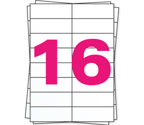 Einer unserer Din A4 Stickerbögen ist das Modell mit 16 Stickern pro Bogen. Diese A8 Aufkleber bestehen aus 70 gramm weißem Papier. Die Rückseite wiegt 55 gramm. Die Sticker haben eine permanente Klebkraft. Die Aufkleber sind geeignet für alle Inkjet Drucker, Laserdrucker, Offset Drucker und Kopierer. Eine Verpackung enthält 100 A4 Etikettenbögen, also 1600 A8 Aufkleber. Die Aufkleber haben die Maße 105mm x 37mm. Die Etiketten sind multifunktionelle Etiketten.
